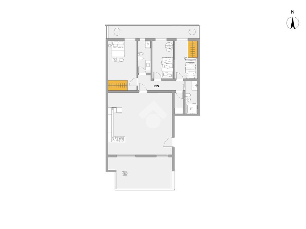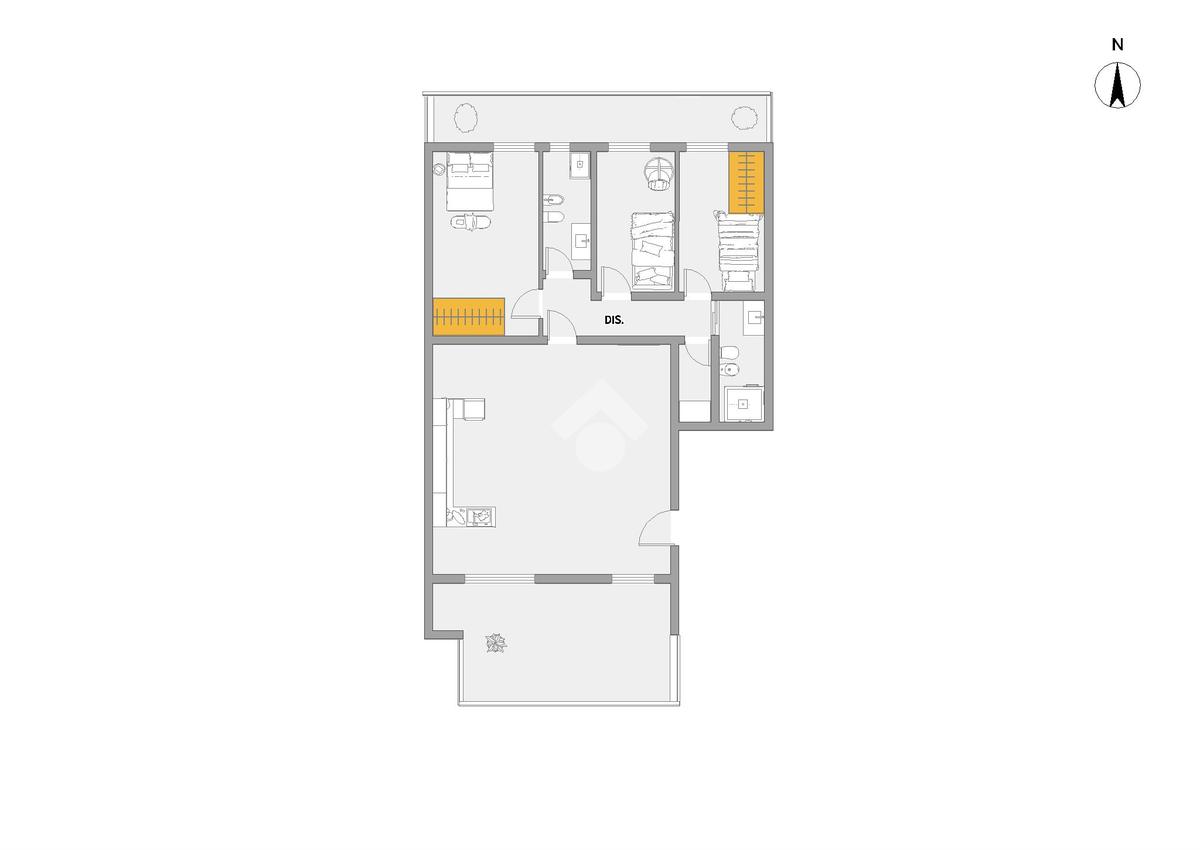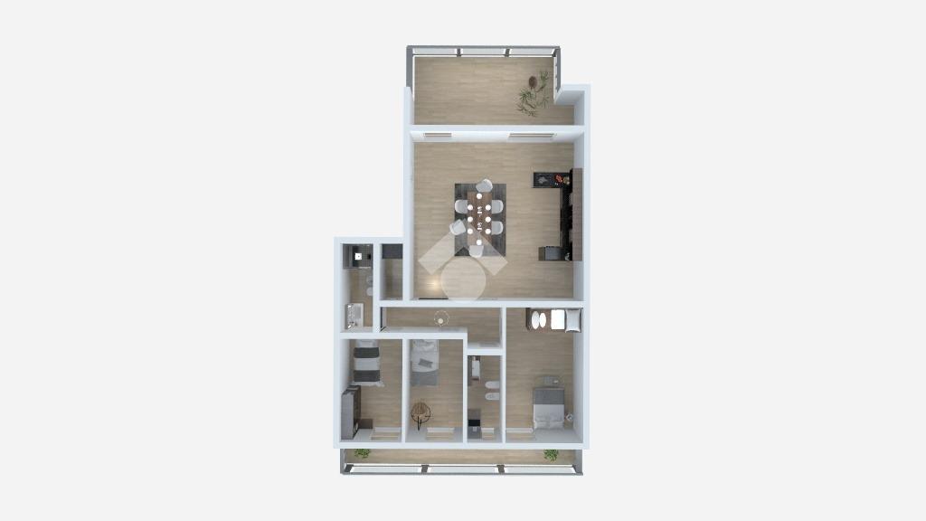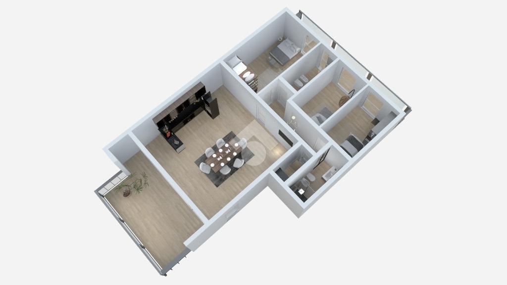 L'appartamento si apre su una moderna e luminosa zona living open space: un luogo pensato per il benessere quotidiano e la condivisione, con accesso diretto ad una veranda privata, spazio perfetto per pranzi all’aperto o come zona relax durante tutte le stagioni.