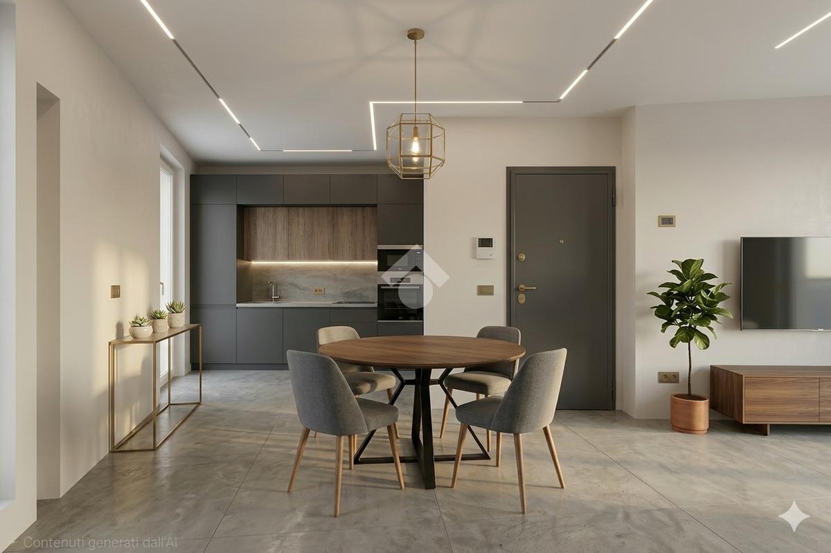 L’ingresso apre su una comoda zona living open space, ideale per accogliere cucina e soggiorno, con accesso diretto a uno spazio esterno privato perfetto per il relax.
